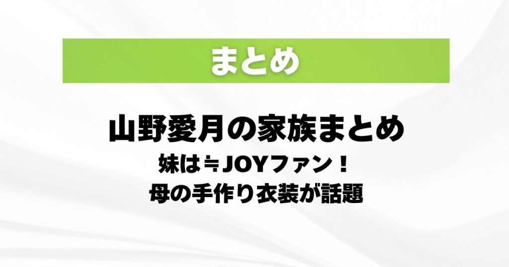 山野愛月の家族はどんな人?妹は≒JOYファン!母の手作り衣装が話題
